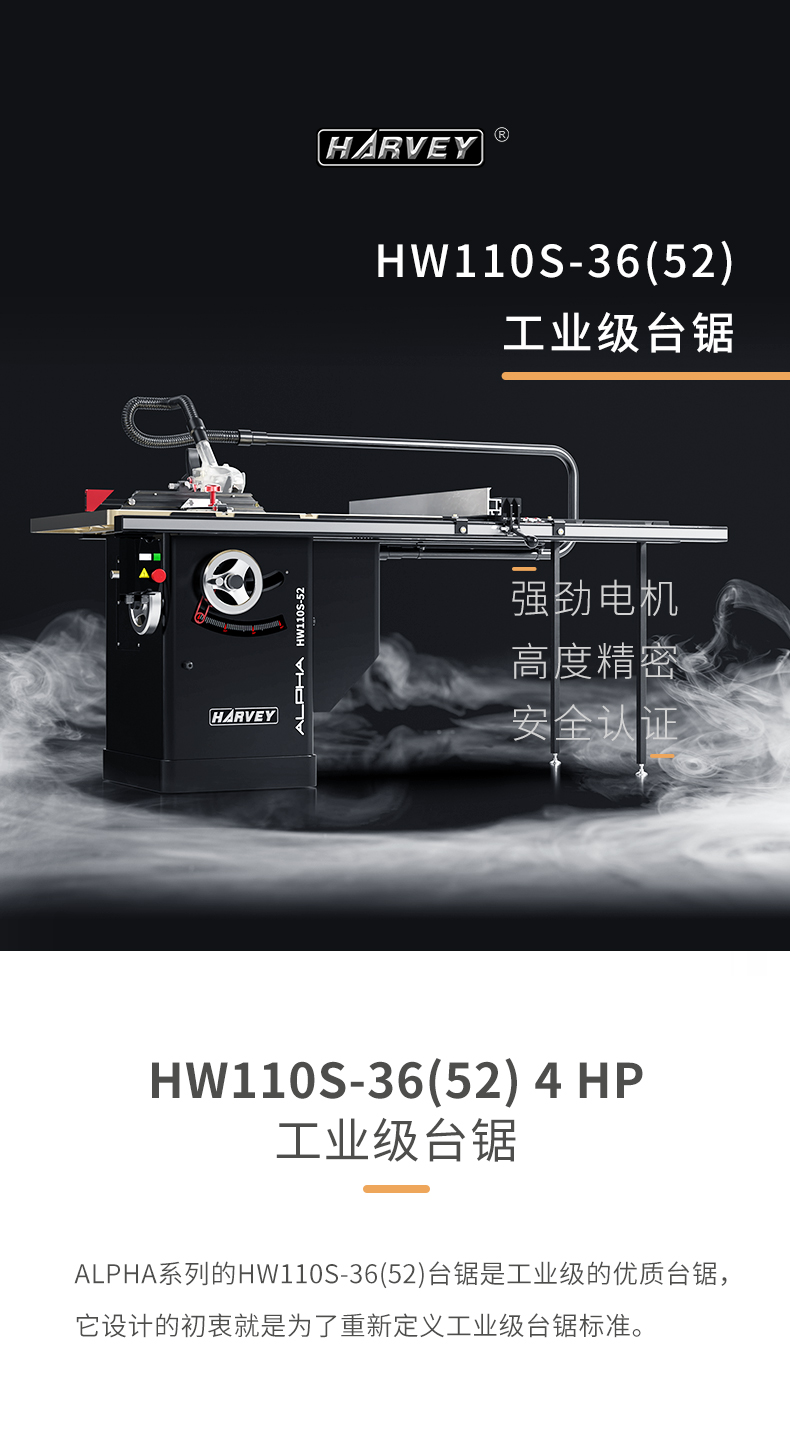 海威HARVER HW110S-36/52/36P/52P 10″ 超级木工台锯