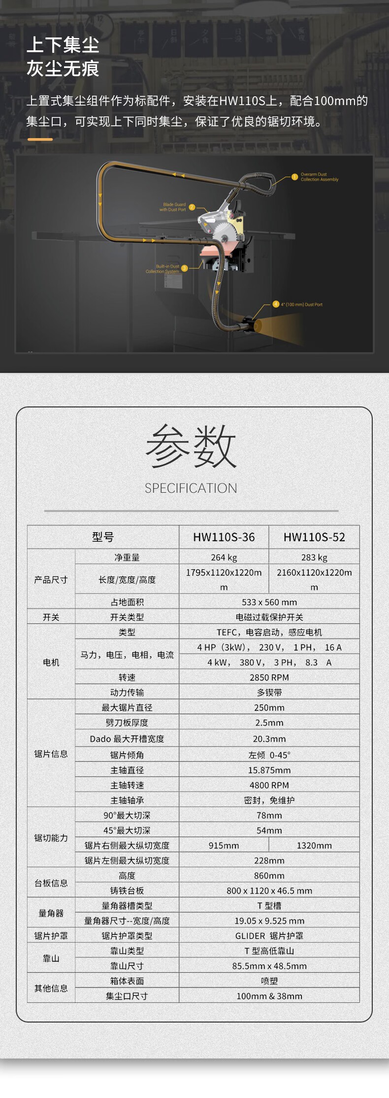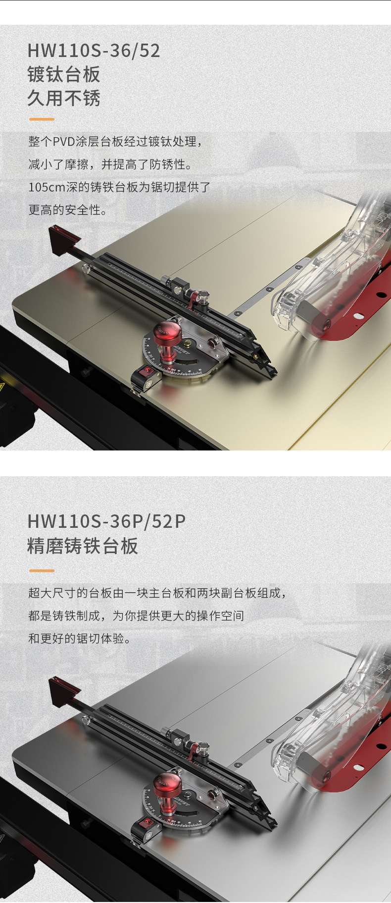 海威HW110S-36/52/36P/52P 10″ 超级木工台锯