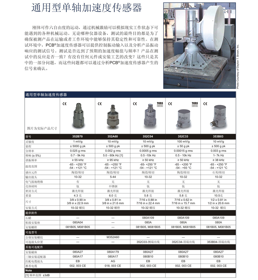 美国PCB加速度传感器 352C33单轴 加速度传感器 加速度计 产地:美国