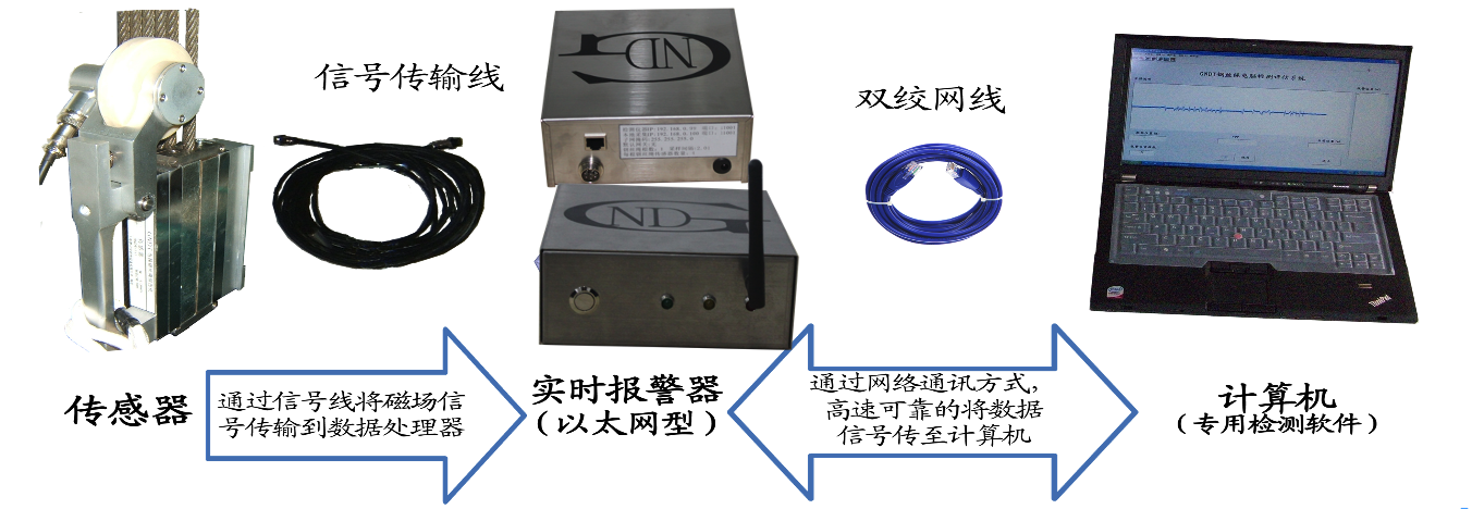 NDTPC15 | (检测钢丝绳直径不大于14mm) | 以太网型多功能实时报警器(有线) 或以太网型多功能实时报警器(无线) | 钢丝绳监控系统软件 |