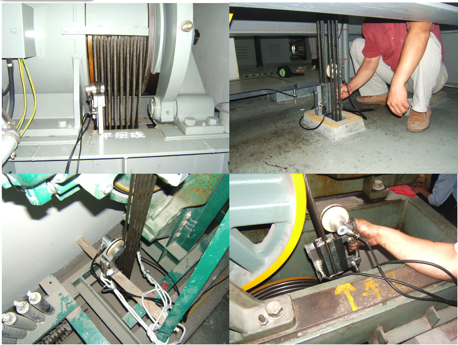 电梯曳引钢丝绳是电梯重要的悬挂装置,承受着轿厢和对重的全部重量,通过与曳引轮轮槽之间的摩擦力驱动轿厢升降,是电梯中十分重要的“高危构件”,因此曳引钢丝绳的**是电梯**的重要保障。钢丝绳除了承受着拉伸应力之外,在运转时承受着弯曲应力,同时在绳槽中也承受着较高的挤压应力,再加上本身加工过程中产生的内应力,所以钢丝绳是电梯运行中承受应力种类多的部件,也是电梯中损耗比较严重的部件,所以在检验过程中对电梯钢丝绳进行系统的检验非常重要。长期以来,由于缺少科学可靠的检测设备,电梯钢丝绳的**监控始终是电梯**管理中的“盲点”。
