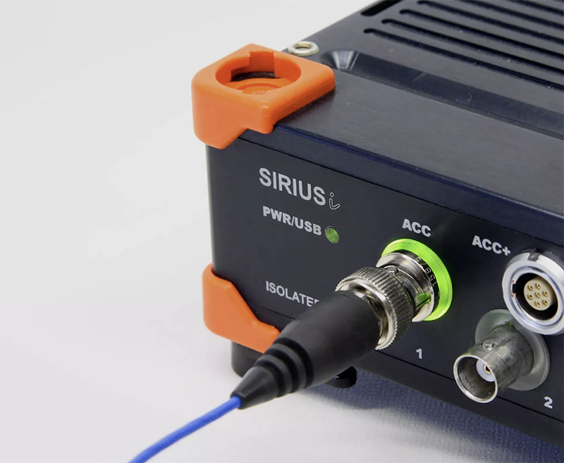 SIRIUS ACC 前端放大器输入接头上有一个 LED 状态指示环。在接入 IEPE 传感器后,放大器会持续监测流向传感器的电流,根据传感器的阻抗是否正常,LED 指示环会自动切换为绿色或者红色。
