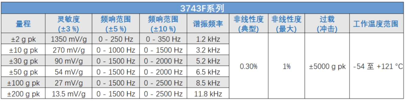 型号3743F利用变电容MEMS技术实现在宽输入电压范围5-32V下的稳定**的测量。它在正交的三个轴(X,Y,Z)上同时测量加速度和低频振动。